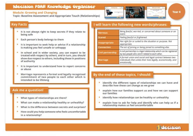 Year 4 - PSHE- Appropriate touch (Relationships)