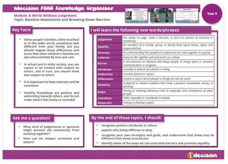 Year 4 - PSHE- Breaking down barriers