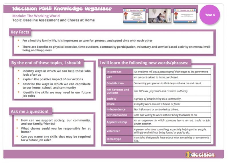 Year 4 - PSHE- Chores at home