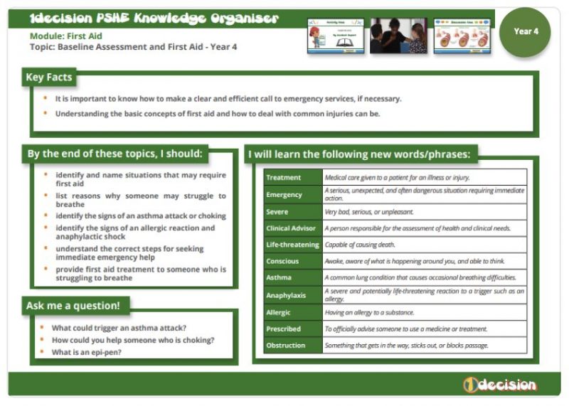 Year 4 - PSHE- First Aid